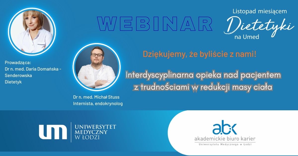 Za nami ostatni webinar w ramach „Listopada miesiącem Dietetyki na UMedzie”, poświęcony interdyscyplinarnej opiece nad pacjentem z trudnościami w redukcji masy ciała.