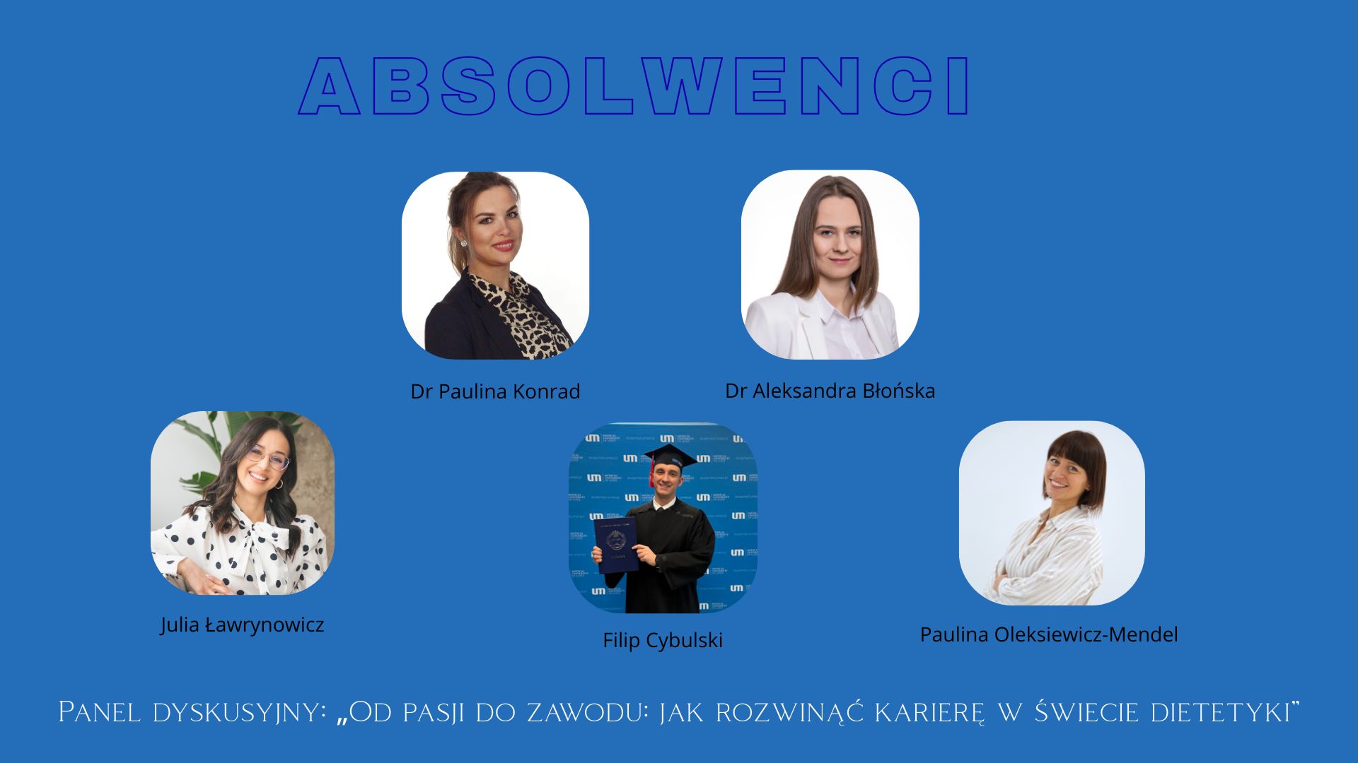 W ramach panelu „Od pasji do zawodu: jak rozwinąć karierę w świecie dietetyki” zaprezentowali się również nasi absolwenci kierunku dietetyka. Podzielili się swoimi doświadczeniami zawodowymi, ścieżkami rozwoju oraz praktycznymi wskazówkami dla studentów, którzy dopiero rozpoczynają swoją drogę w świecie dietetyki.