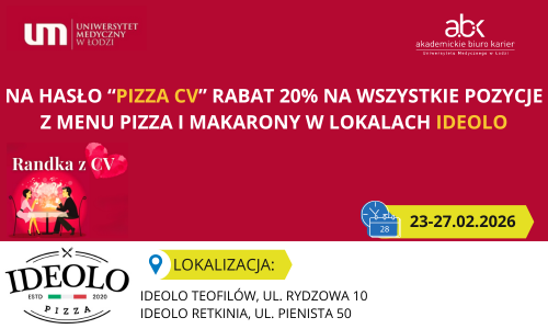 Przez cały tydzień Randki z CV (23–27.02.2026 r.) możesz skorzystać z promocji -20% w lokalach Ideolo!